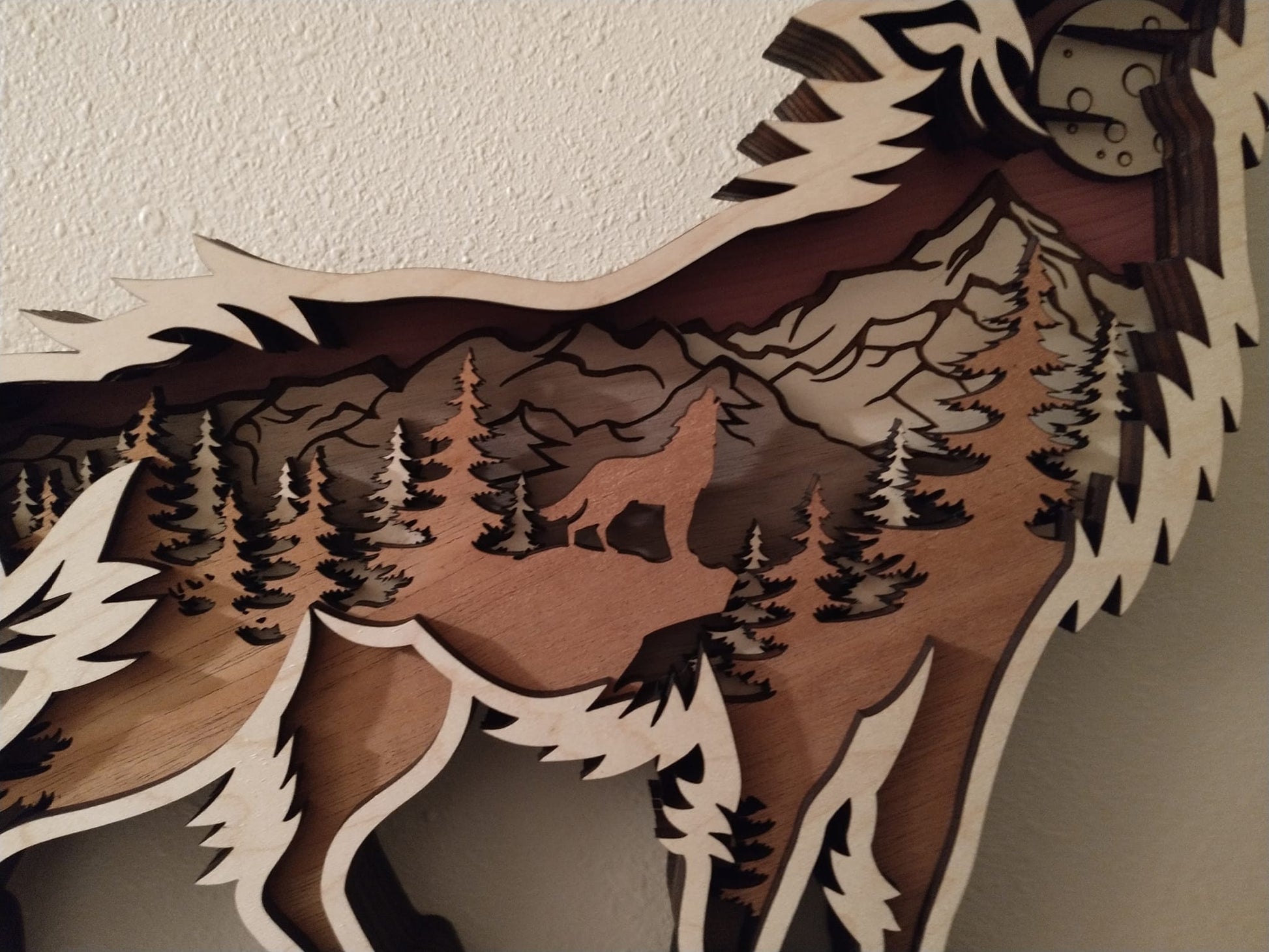 Equipped with a convenient hanger, this décor piece is ready to adorn your wall and become a standout feature in any room. Whether as a distinctive gift for wildlife enthusiasts or a unique addition to your own decor collection, the Multi-Layered Wolf Décor is sure to impress.