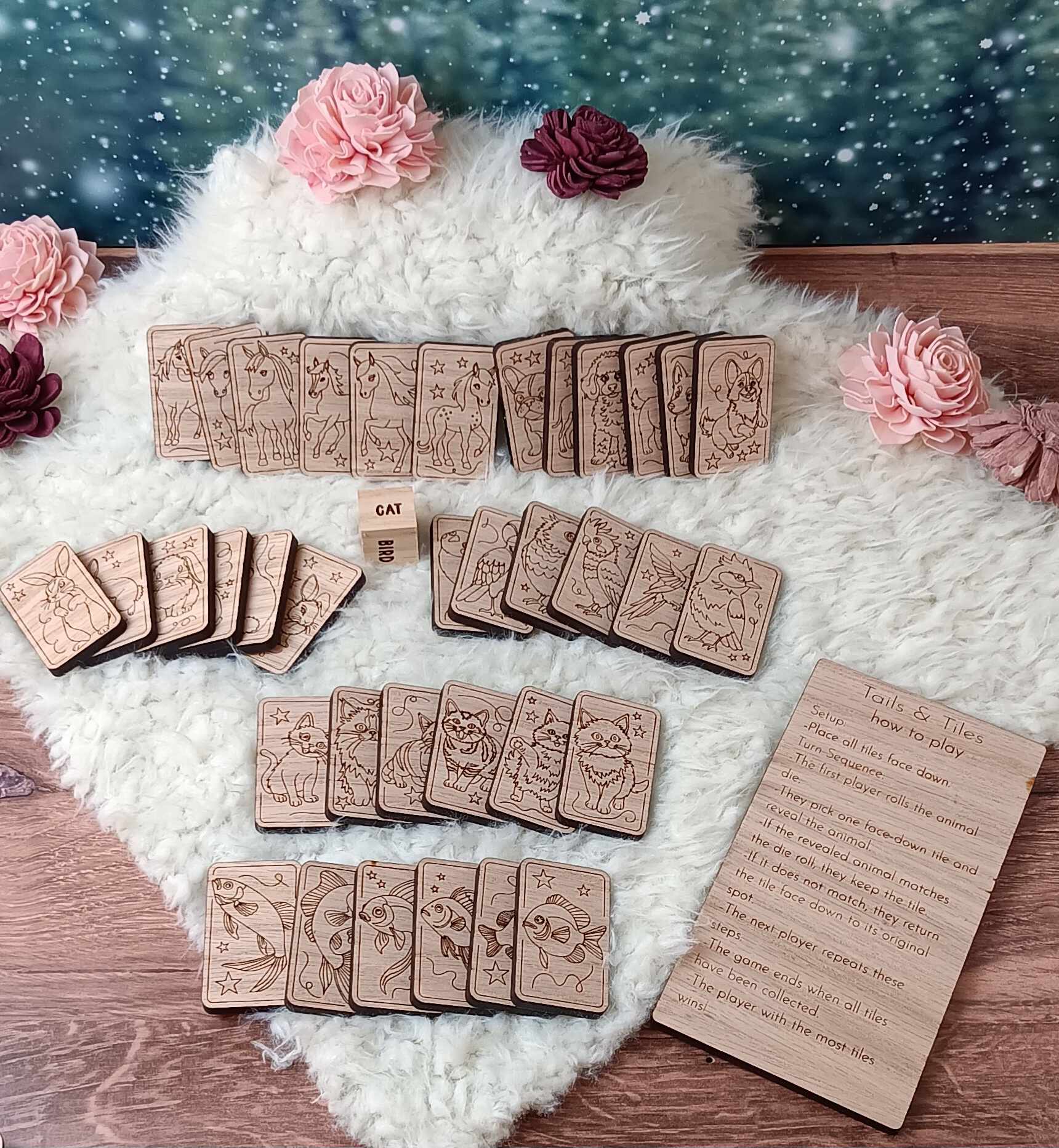 Introduce endless fun with Tails & Tiles, a delightful game that blends memory skills, luck, and animal recognition into one exciting experience! Perfect for families, kids, and game lovers, this handcrafted wooden game set is both educational and entertaining.