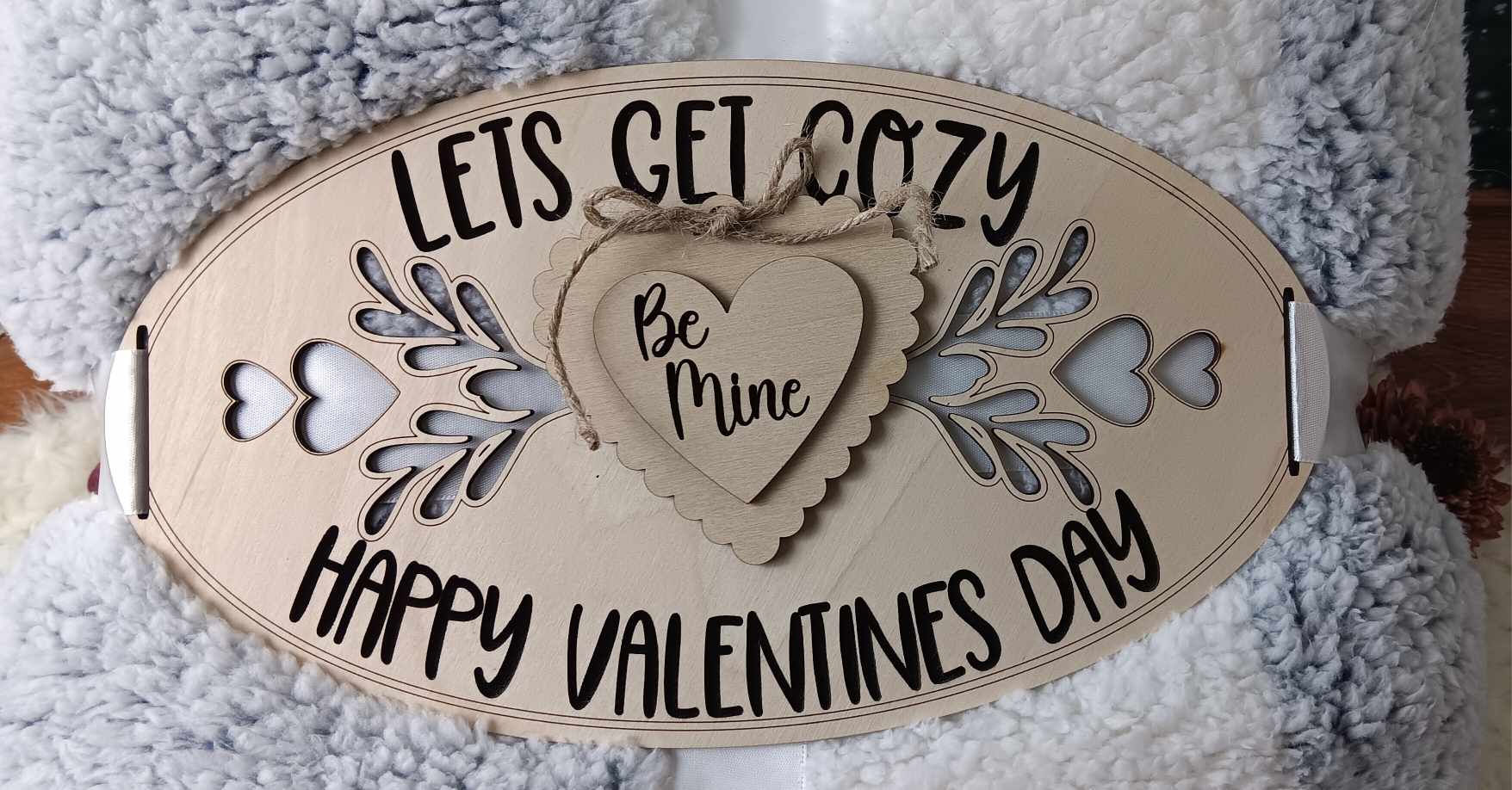 Wrap yourself or a loved one in warmth and comfort with our ultra-soft Valentine's Day blanket, perfect for celebrating love and cozy moments. This luxurious sherpa blanket features a chic design that combines functionality with heartfelt charm. The accompanying decorative band adds a touch of elegance with the words “Let’s Get Cozy” and “Happy Valentine’s Day,” along with a romantic “Be Mine” wooden heart embellishment—making it a thoughtful and timeless gift.